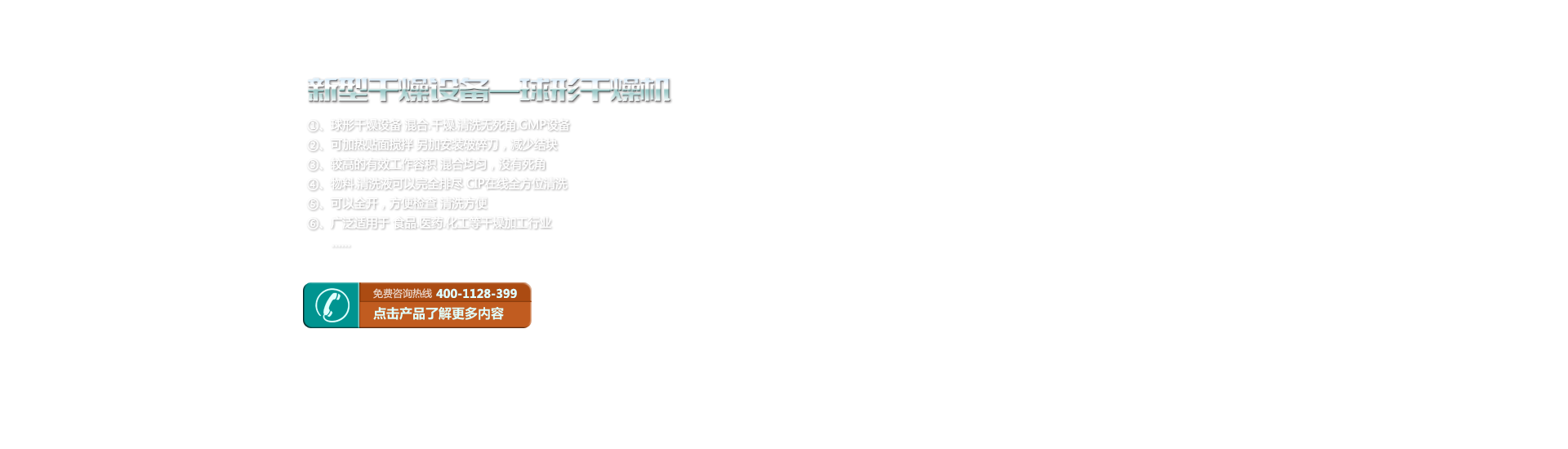 球形干燥機(jī):因其形狀類(lèi)似于球體而得名,球形干燥器、球型干燥機(jī)是目前干燥設(shè)備上比較新穎的一種,不但可以用于干燥,還可以用于混合,制粒等。與其他干燥設(shè)備相比,其具有物料適用性強(qiáng),裝料系數(shù)高,干燥效果好,混合無(wú)死角,下料無(wú)殘留,易于清洗,符合cGMP要求等優(yōu)點(diǎn),但由于其技術(shù)要求高,加工難度較大,導(dǎo)致其售價(jià)較高,目前在國(guó)內(nèi)應(yīng)用較少。